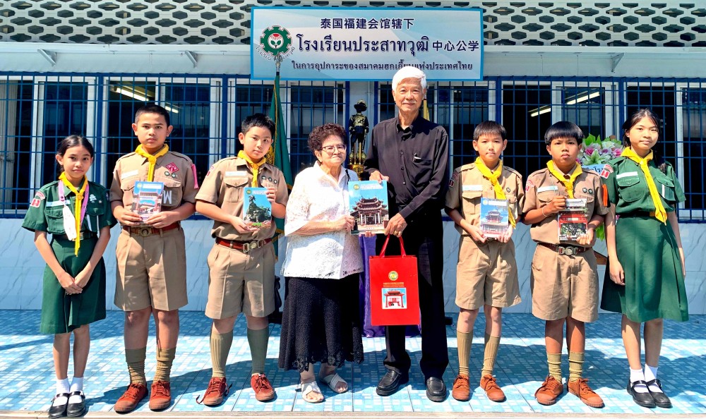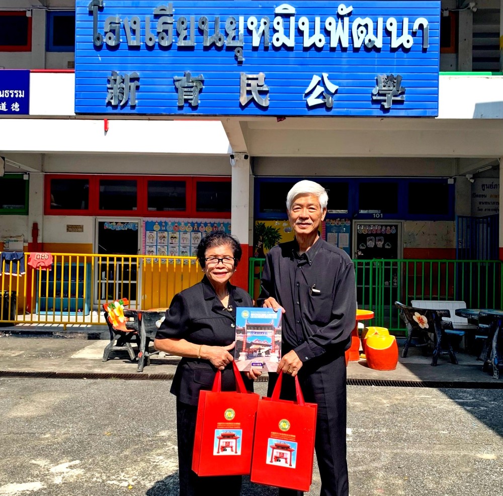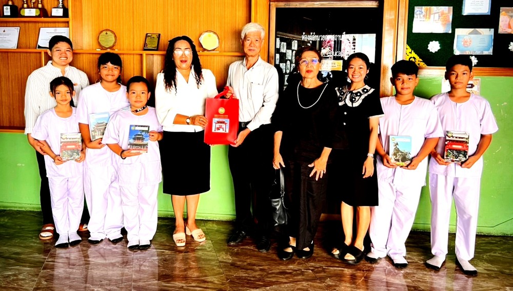 2025年12月16日,中外抱团网荣誉主席、泰国世界百家姓艺术基金博物馆主席、泰国广肇会馆名誉理事长梁柱稳先生与副主席梁关雪芬女士一行,访问泰国玛哈维拉努瓦小学、在泰国玛哈维拉努瓦小学捐赠仪式上,学校总务主管朱拉提主持并接收了梁主席捐赠的教材,表示感谢。梁主席一行还向泰国新育民公学、泰国存真学校、泰国福建会馆中心公学等捐赠教材,受到各学校领导师生的热情欢迎。
