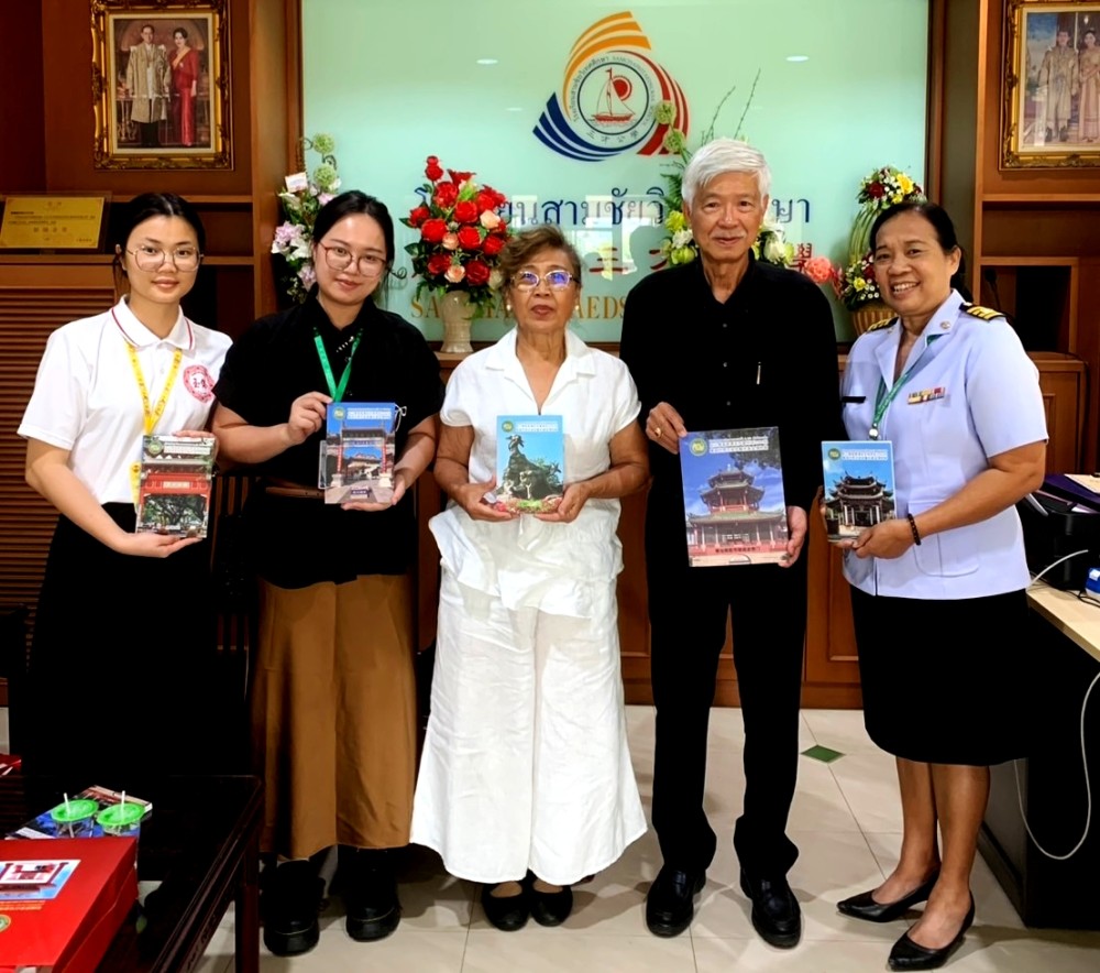 访问期间,梁柱稳主席向学校赠送了五套特别编纂的中泰文双语+中国方言教材,内容涵盖中文普通话及广东话、潮州话、闽南话、客家话、海南话等六种中国方言。该系列教材包括《自学中文与广东话2000词》《自学中文与潮州话2000词》《自学中文与闽南话2000词》《自学中文与客家话2000词》《自学中文与海南话2000词》,旨在帮助学生在学习普通话的同时,接触并了解中国丰富的方言文化。