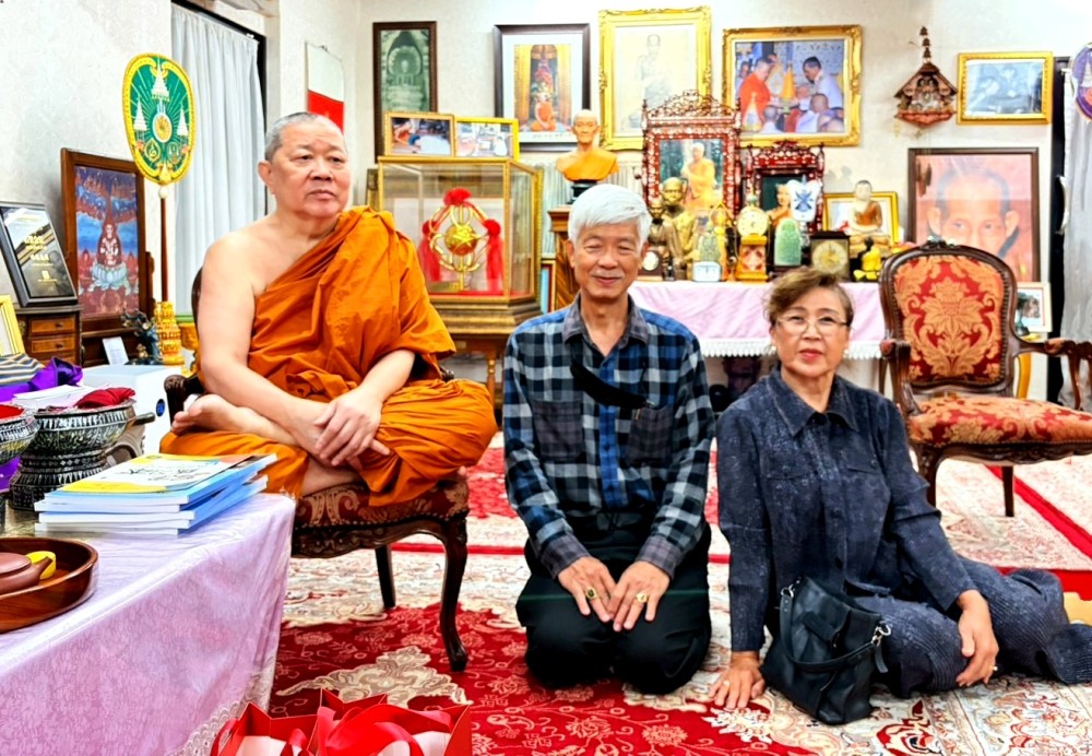 中外抱团网荣誉主席、泰国世界百家姓艺术基金博物馆主席、泰国广肇会馆名誉理事长梁柱稳先生偕副主席梁关雪芬女士,前往位于曼谷三攀他旺区的岱密金佛寺,拜访泰国僧咖委员会中部僧咖委僧长、泰国海上丝路孔子学院理事会主席、泰国岱密中学孔子课堂理事会主席颂德帕拉玛哈拉差蒙坤牟尼(颂德通猜)。