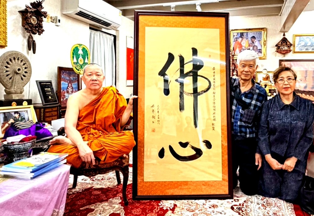 访问期间,梁柱稳主席向颂德通猜僧长赠送了《中泰文+中国方言教材》以及中国书法作品《佛心》。僧长对此表示感谢,并对梁柱稳主席与梁关雪芬副主席的慷慨捐赠致以诚挚谢意。