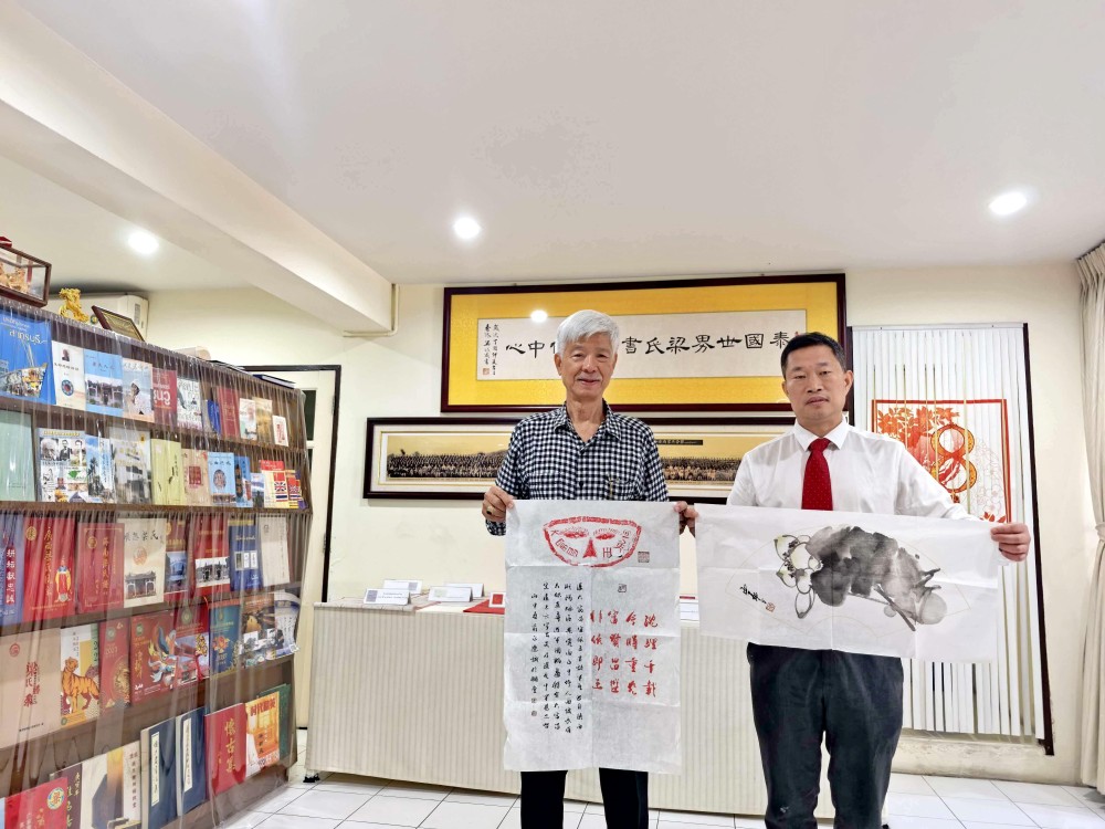 到访期间,双方进行了亲切友好的交流,并互赠了《中泰文+中国方言教材》及多幅书画艺术作品。此次会面深化了中泰两国在文化、艺术与慈善领域的相互了解,为未来的进一步合作奠定了良好基础。