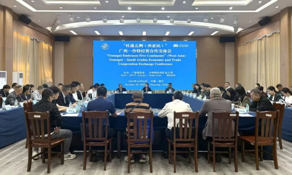 2025年10月29日,由广西贸促会和沙特阿拉伯矿业公司共同主办的“桂通五洲(西亚站)”广西—沙特经贸合作交流会在广西贸促会举办。广西贸促会、广西国际商会会长杨雁雁,沙特阿拉伯矿业公司副总裁穆罕默德·宾亚库布出席会议并讲话。沙特阿拉伯矿业公司代表,广西矿山企业代表、部分市贸促会代表以及新闻媒体共60余人参加了交流会。