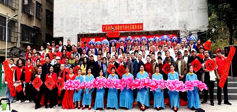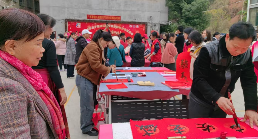 舞台一侧,墨香四溢。广西桂墨丹青书画院的书法家们现场挥毫,笔走龙蛇,一幅幅寓意吉祥的春联和“福”字在他们手中诞生,并免费赠送给居民。红纸黑字间流淌的是年味,也是文化的传承。